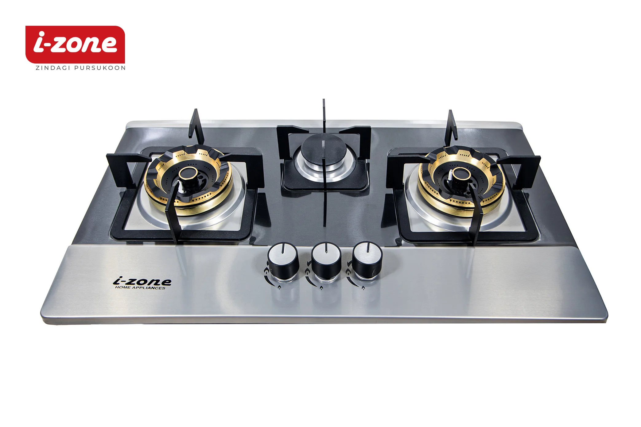 Buy the i-Zone 3S-118 Kitchen Hob at the best price in Pakistan 2025 from Zam Zam Centre. 3-burner gas hob with stainless steel body, auto-ignition, energy efficiency, and stylish design